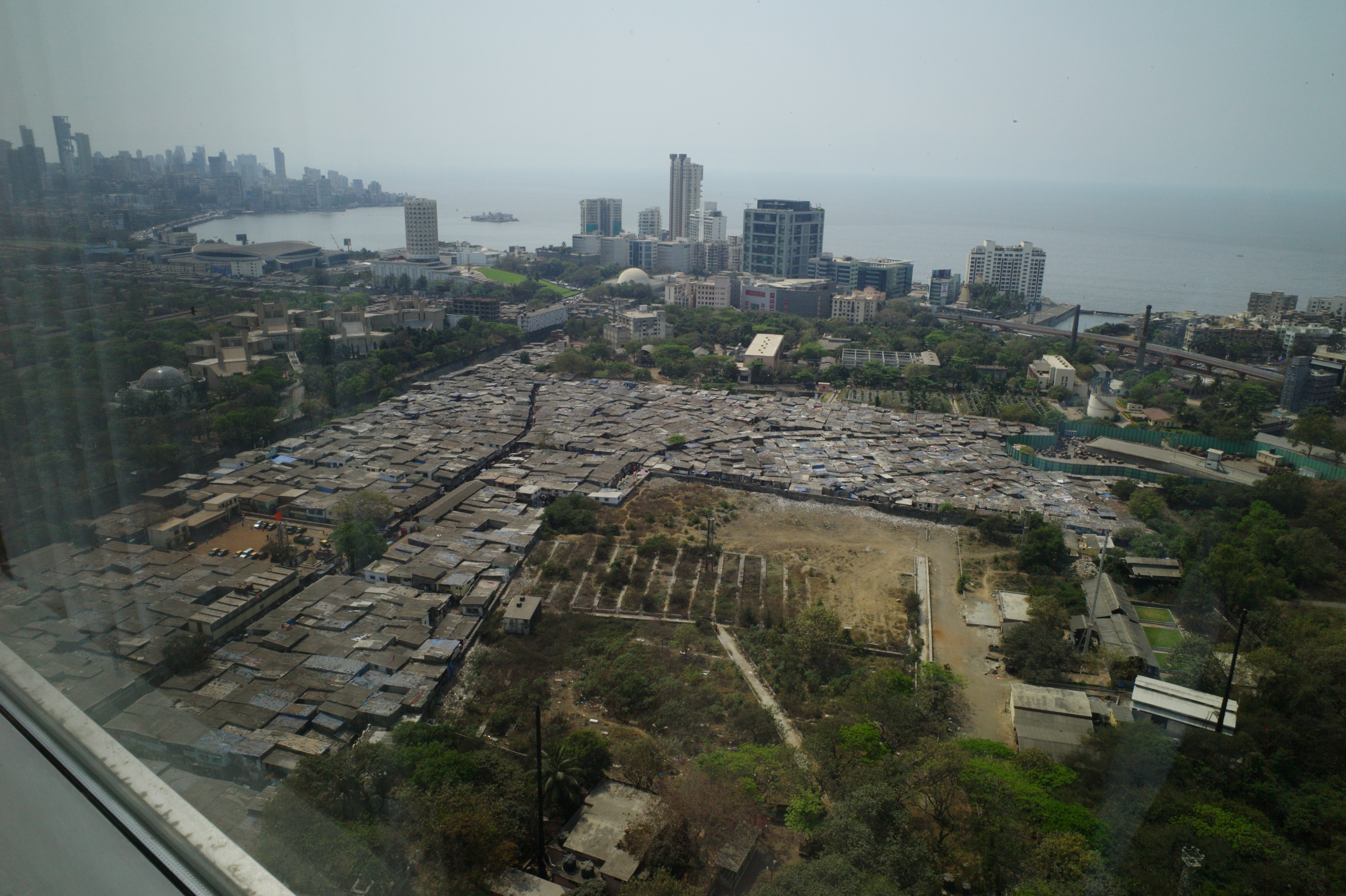 Incredible wealth and incredible poverty (just like in Slumdog Millionaire) literally right next to one another.